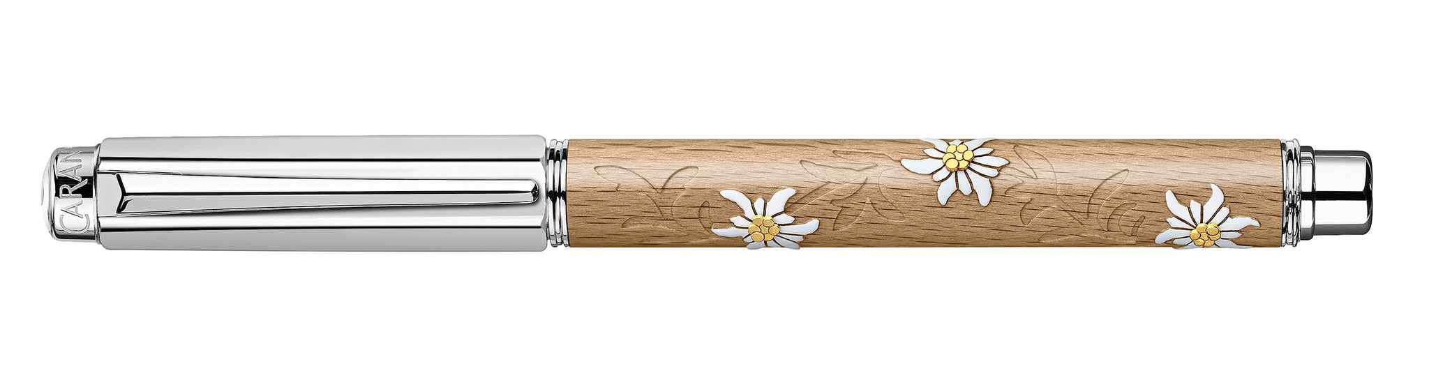 Caran d’Ache invites you on a journey to the heart of the Swiss Alps with the creation of a beechwood instrument in the effigy of the emblematic mountain flower: the edelweiss. The Body is made from Swiss beechwood and engraved on two different levels. The delicate, meticulous lacquer details are applied by hand by only master Caran D'Ache craftsmen.
