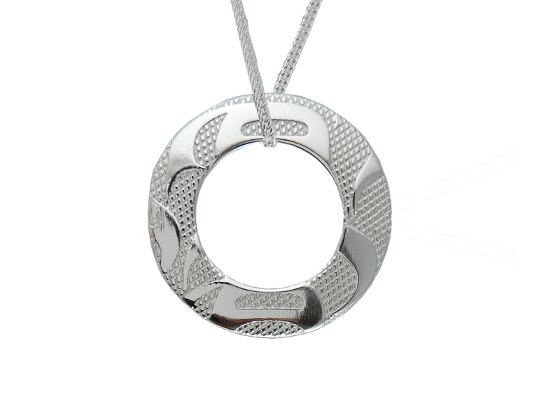 Titled Equilibrium, this modern and minimalistic Pendant is created by renowned Kwakwaka'wakw / Tlingit Artist Corinne Hunt
